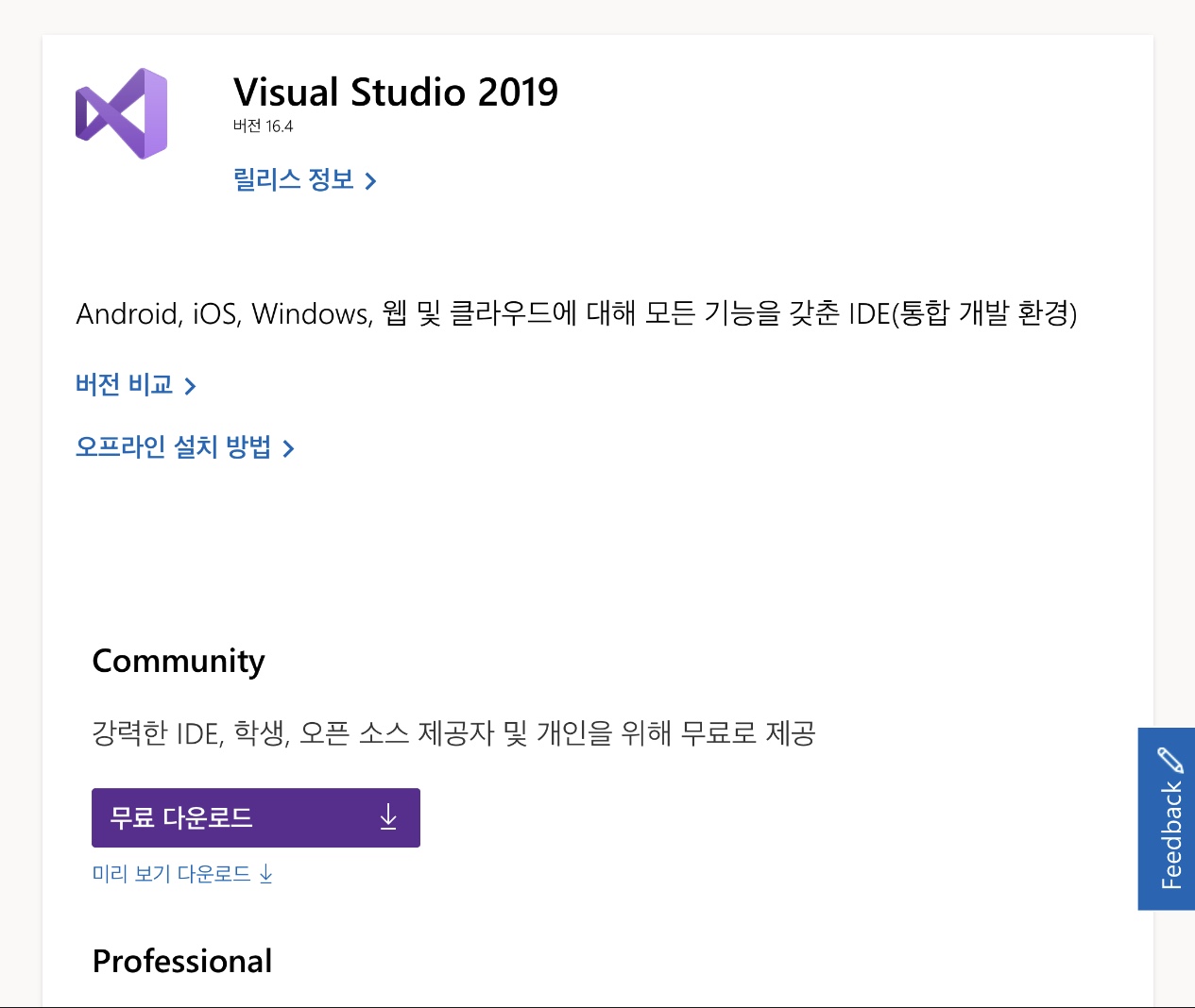 Visual Studio 설치(Microsoft 공식 홈페이지)